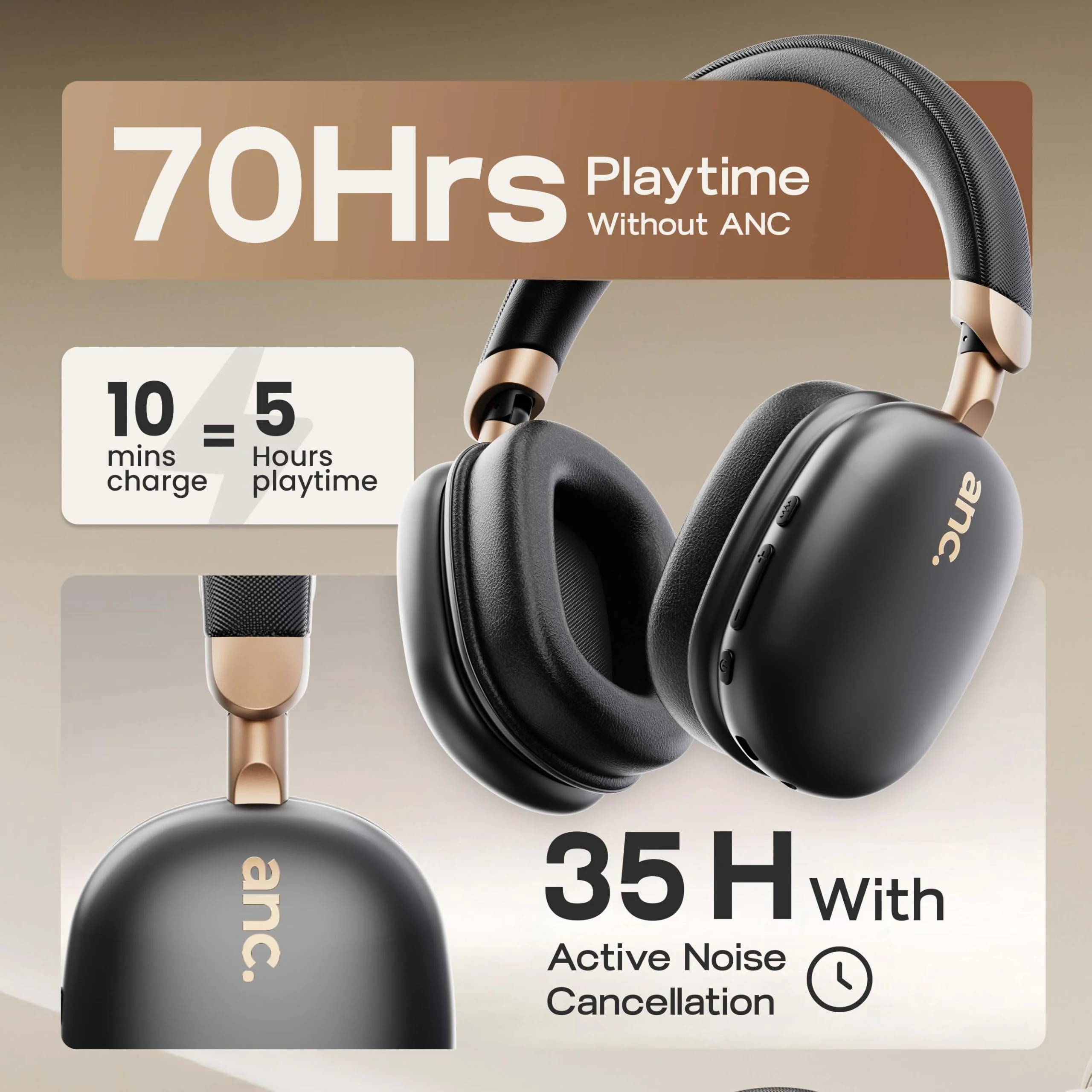 GOBOULT-Fluid X Pro Ear Bluetooth Headphones with 70H Playtime, 40mm Bass Drivers, Zen ENC Mic, Type-C Fast Charging, 4 EQ Modes, AUX, IPX5 Wireless Headphones (Black) – Black / Normal